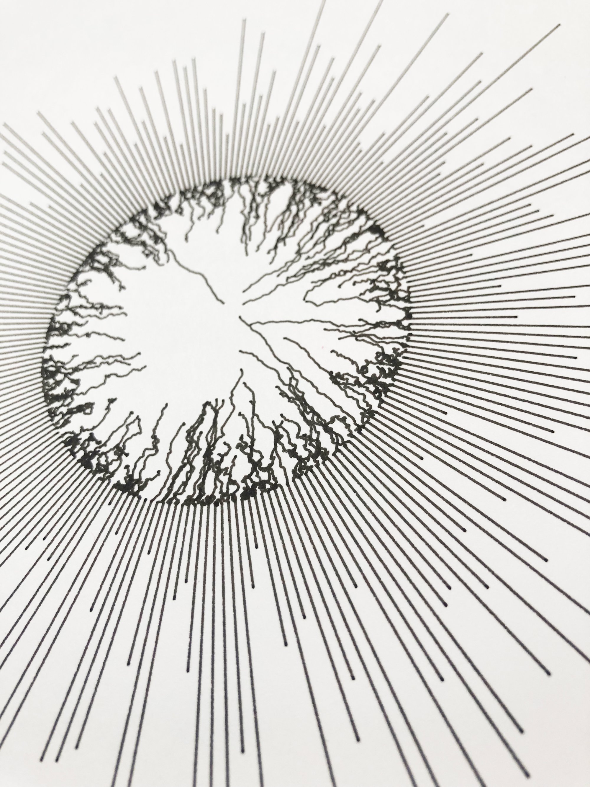 Generative process through creative coding (JavaScript + D3js) exported as SVG to Inkscape, and pen plotted using an AxiDraw A3/V3.